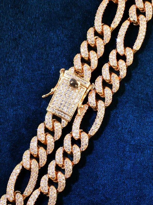 Bracelet Cubain Iced-Lock Plaqué Or 12mm