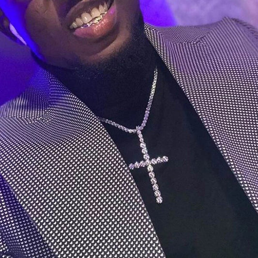 Silver Diamond Tennis Cross Pendant