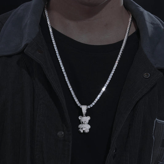 Teddy bear pendant with moissanite diamonds