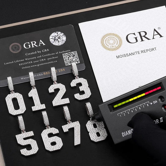 Silver Moissanite diamond number pendant