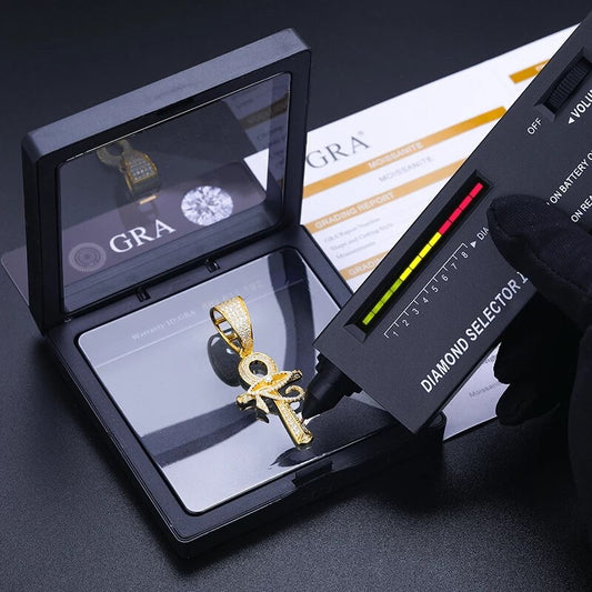Silver Moissanite Diamond Ankh Cross Pendant